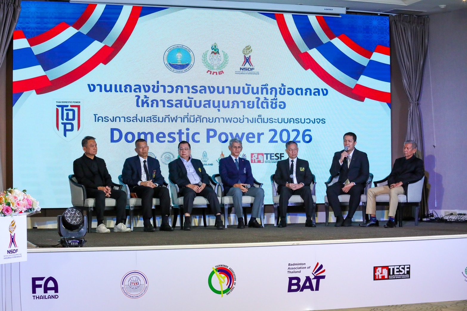 เมื่อวันที่ 12 กุมภาพันธ์ 2569 เวลา 9.30 น. กองทุนพัฒนาการแห่งชาติ ร่วมกับ การแห่งประเทศไทย จัดงานแถลงข่าวลงนามบันทึกข้อตกลงที่กองทุนพัฒนาการกีฬาแห่งชาติให้การ สนับสนุน ภายใต้ชื่อ โครงการส่งเสริมกีฬาที่มีศักยภาพอย่าง เต็มระบบ Domestic Power 2026 โดยได้รับเกียรติจาก ดร.วนิดา พันธ์สอาด รองปลัดกระทรวงการท่องเที่ยวและกีฬาเป็นประธาน ในโอกาสเดียวกันมี นายสุรศักดิ์ เกิดจันทึก รองผู้ว่าราชการการกีฬาแห่งประเทศไทย ฝ่ายส่งเสริมกีฬา นายธนุเกียรติ จันทร์ชุม ผู้จัดการกองทุนพัฒนาการกีฬาแห่งชาติ ผู้บริหารการกีฬาแห่งประเทศไทย ผู้บริหารสมาคม กีฬา ตัวแทนนักกีฬา และสื่อมวลชนที่เข้าร่วม ความร่วมมือในครั้งนี้ ถือเป็นการบูรณาการเชิงยุทธศาสตร์ ระหว่าง กระทรวงการท่องเที่ยวและกีฬา การกีฬาแห่งประเทศไทย และสมาคมกีฬาที่เกี่ยวข้อง เพื่อพัฒนาชนิดกีฬาที่มีศักยภาพอย่างมุ่งเป้า โดยในปีงบงบประมาณนี้ กองทุนพัฒนาการกีฬาแห่งชาติ สนับสนุนงบประมาณกว่า 186 ล้านบาท ครอบคลุมชนิดกีฬาได้แก่ ฟุตบอล แบดมินตัน เทควันโด อีสปอร์ต กอล์ฟ วอลเลย์บอล กรีฑา บาสเกตบอล …